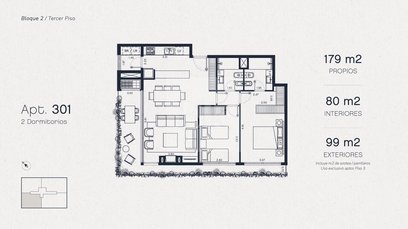 Bloque 2, Unidad 301 de 2 dormitorios en venta.