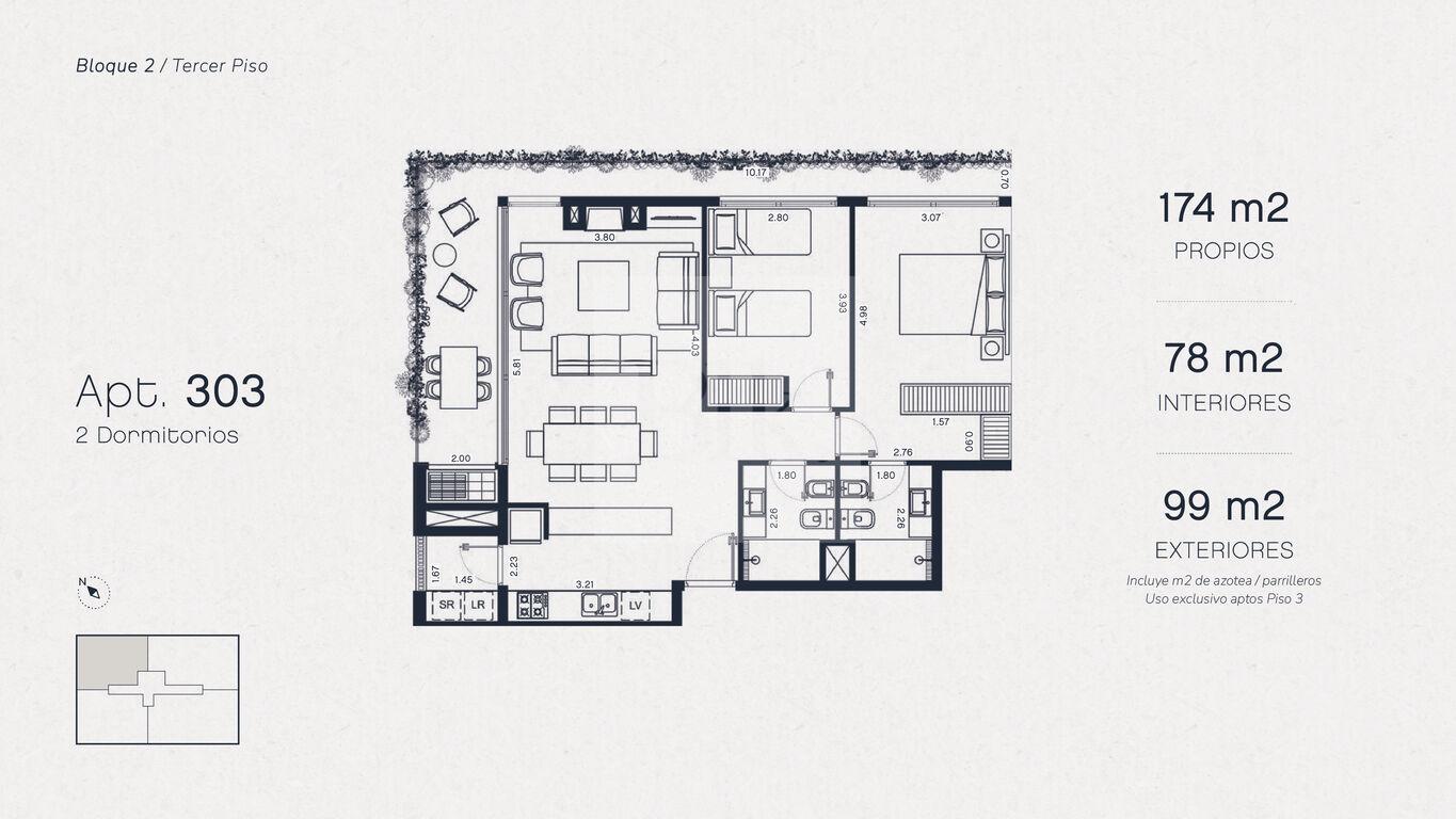 Bloque 2, Unidad 303 de 2 dormitorios en venta.