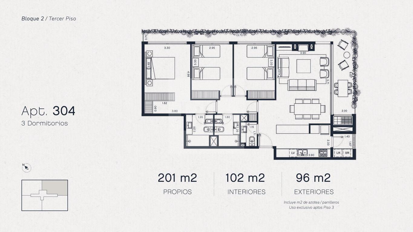 Bloque 2, Unidad 304 de 3 dormitorios en venta.